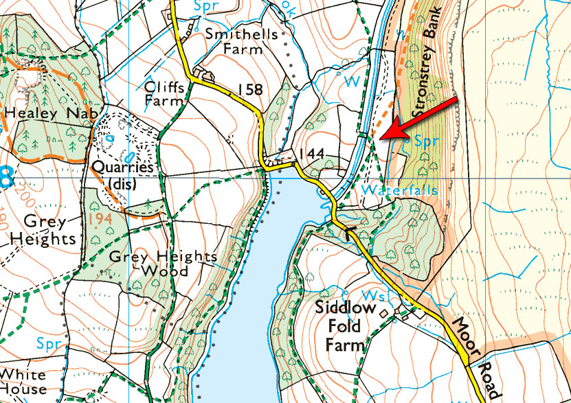 The site itself is easy to reach: “simply head along the Goit from Waterman’s Cottage and after a few hundred yards there is a bridge over the watercourse. The ruins were here.”