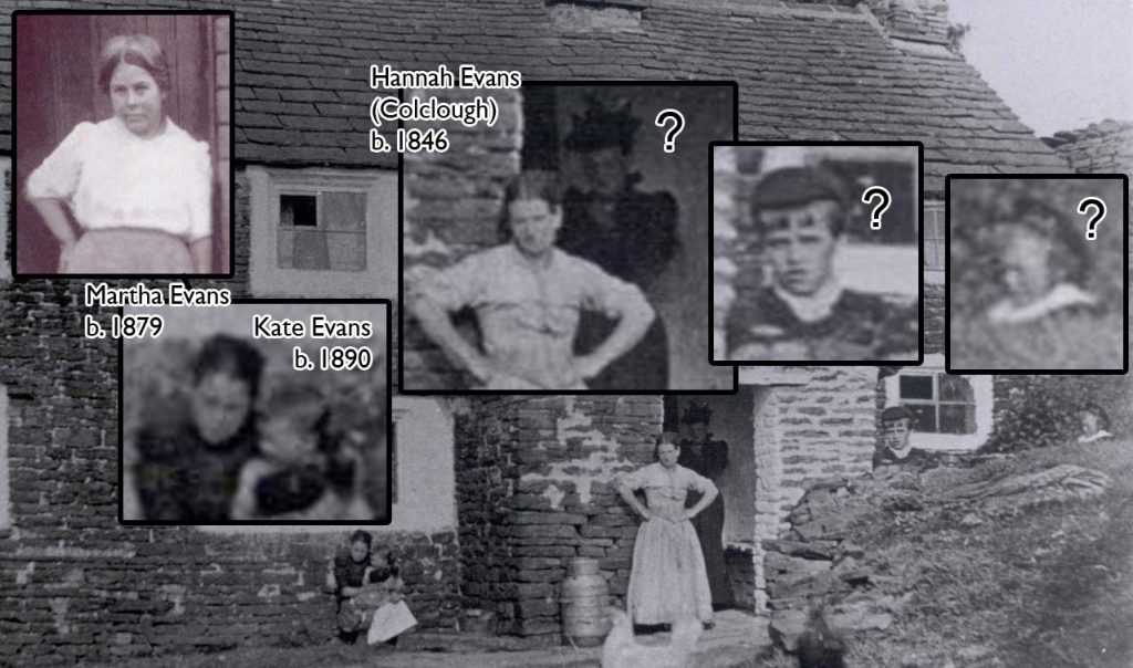 The last known residents of Old Rachel’s were the daughter named and on the photograph above – Martha Evans (1879-1946) and possibly her husband-to-be, Abel Pilkington (born 1858). Poor Kate, who they called Kitty, died at the farm aged only 18. The mystery face is probably one of the sons – Samuel (b.1869 probably too old), John (1877), Joseph (1880) or Henry Junior (1882). Based on my dating of the photo as 1892, that makes to me John or Joseph the most likely candidates, who would have been approx. 12 and 15 years old respectively.