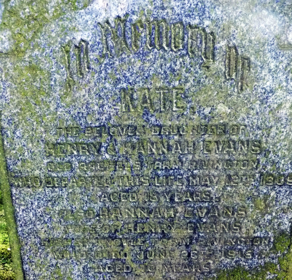 Evans family grave, showing Hannah (mother) and Kate (daughter).