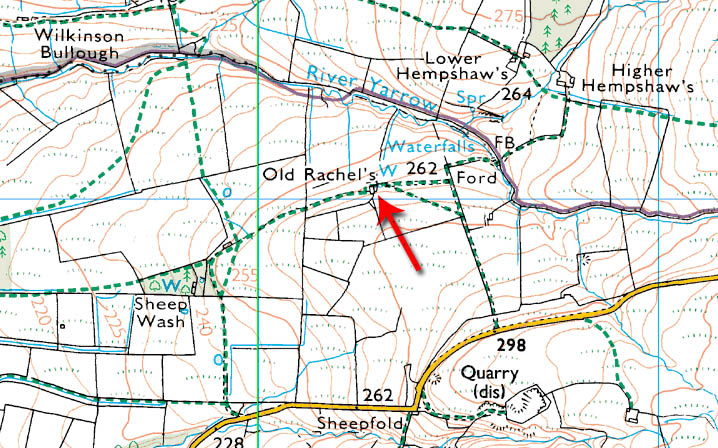 This was a large farm, and is one of the more prominent and well-known ruins on the moors. It’s name still features on maps today, even though there is precious little of the buildings remaining. It was known also as Old Racket’s in the early days. Possibly the most enigmatic ruins of the moors, with plenty of evidence but tantalisingly little about Rachel. It is thought that Old Rachel was regarded as a bogeywoman in days past. She was a bit of a recluse and people tended to shy away from her. If children misbehaved they were threatened that Old Rachel would get them!