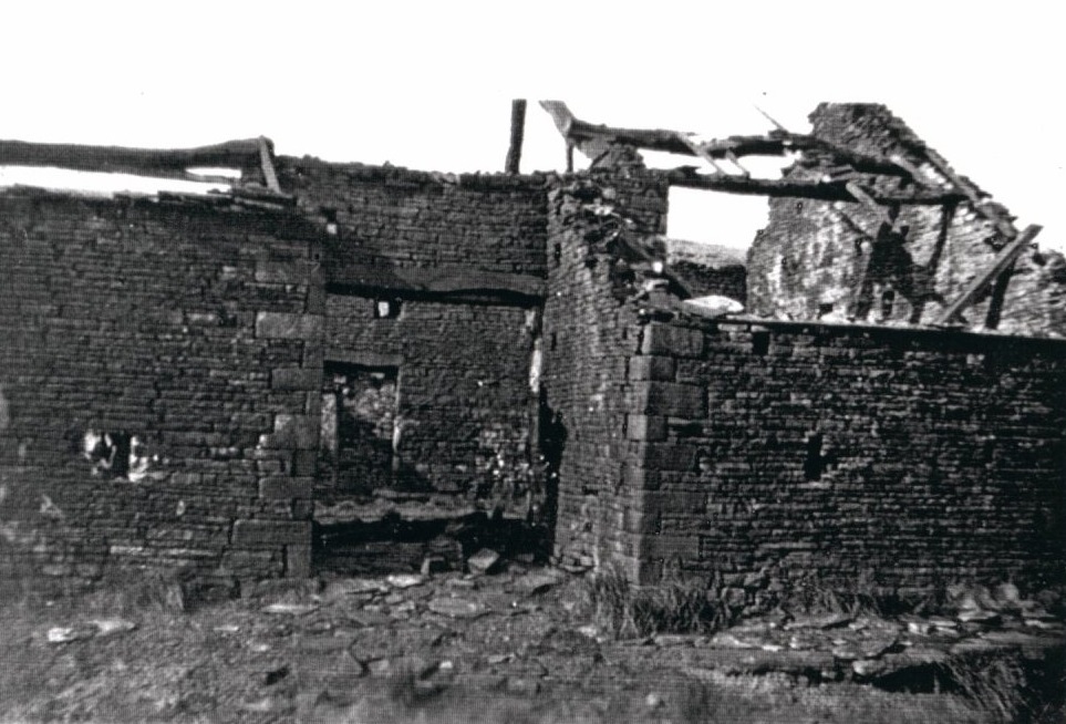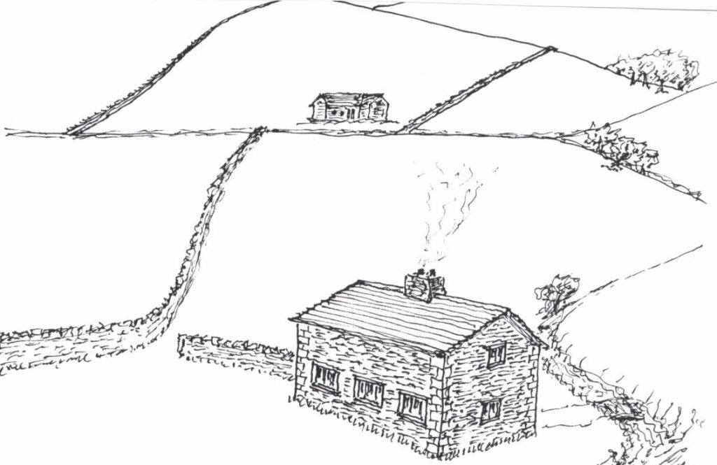 Richard Skelton in Landings mentions “an unnamed and tattered book in Bolton Library that says there was a date stone on the farm of 1649.” The construction was said to include “an unusual form of roof truss, where the beam rests on the walls of the barn, and the roof is made of stone slabs.”