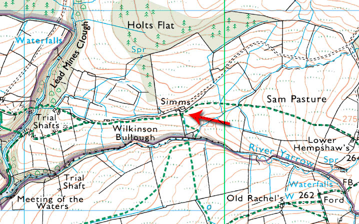 Simms is one of the most remote ruins on the Anglezarke moors, lying south on the banks of the River Yarrow. The name is believed to be a shortened form of Simson, although George Birtill in his book Heather In My Hat suggested that “Simms = Son of Simon, possibly Simon De Knoll who was an early freeholder in Anglezarke.”