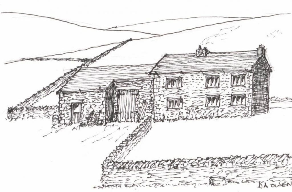 The design of Wilkinson Bullough was known as a longhouse, with the barn attached directly to the dwelling. It is not known whether it had a cross‑passage — a passage linking the front and rear doors — though D.A. Owen’s sketch of the property does not show a clear front entrance. The longhouse style was not reckoned to be particularly common in the West Pennine Moors, presumably because it offered little shelter from the prevailing winds.